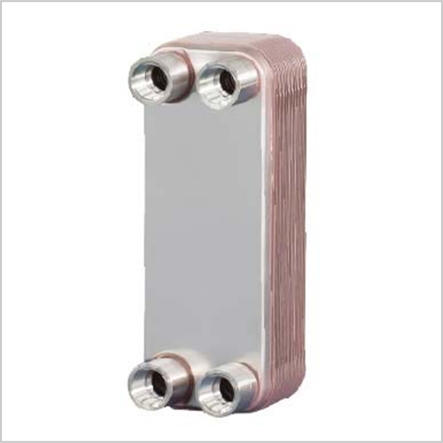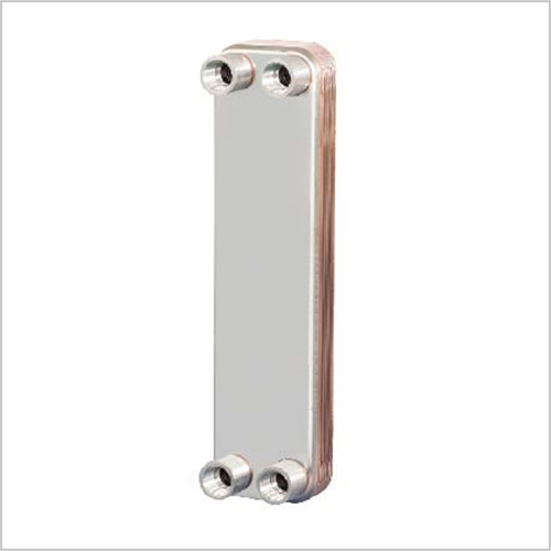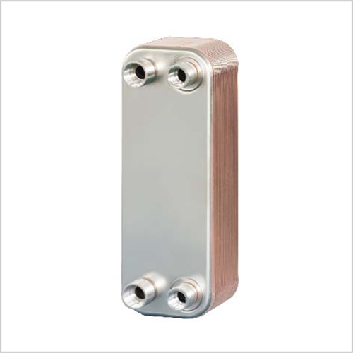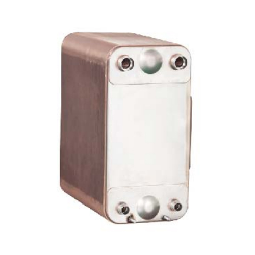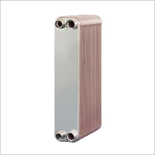 钎焊板式换热器是由一系列具有一定波纹形状的金属片叠装经过钎焊加工而成的一种新型高效换热器。各种板片之间形成薄矩形通道,通过板片进行热量交换。它与常规的管壳式换热器相比,在相同的流动阻力和泵功率消耗情况下,其传热系数要高出很多,在适用的范围内有取代管壳式换热器的趋势。